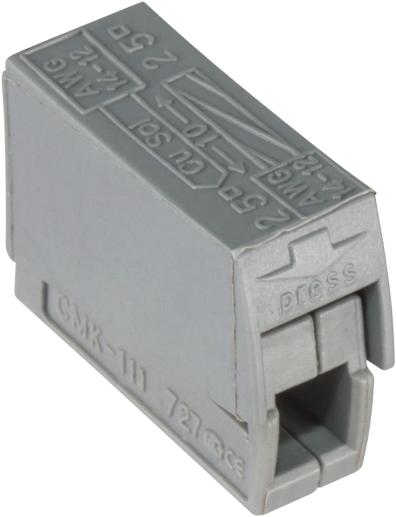 Клемма монтажная пружинная CMK-101 используется для присоединения и ответвления одножильных и многожильных медных проводников. Применяется в местах, где требуется быстрое и безопасное соединение без пайки или винтовых зажимов - например, при установке светильников, выключателей, датчиков движения, в распределительных коробках и на участках с ограниченным доступом.
