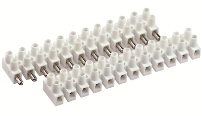 - Два зажима на полюс позволяют организовать проходные соединения без дополнительных перемычек.