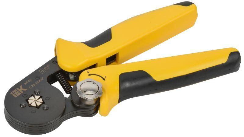Клещи обжимные КО-12 0,25–10 мм2 (шестигранник) с фиксированным устройством для механического инструмента, с автоматическим возвратом - надёжный инструмент для профессиональной опрессовки изолированных наконечников НШВ, НШВИ и НШВИ2. Произведённые компанией IEK в серии ARMA2L, они обеспечивают точный и повторяемый контакт при монтаже силовых и управляющих цепей.