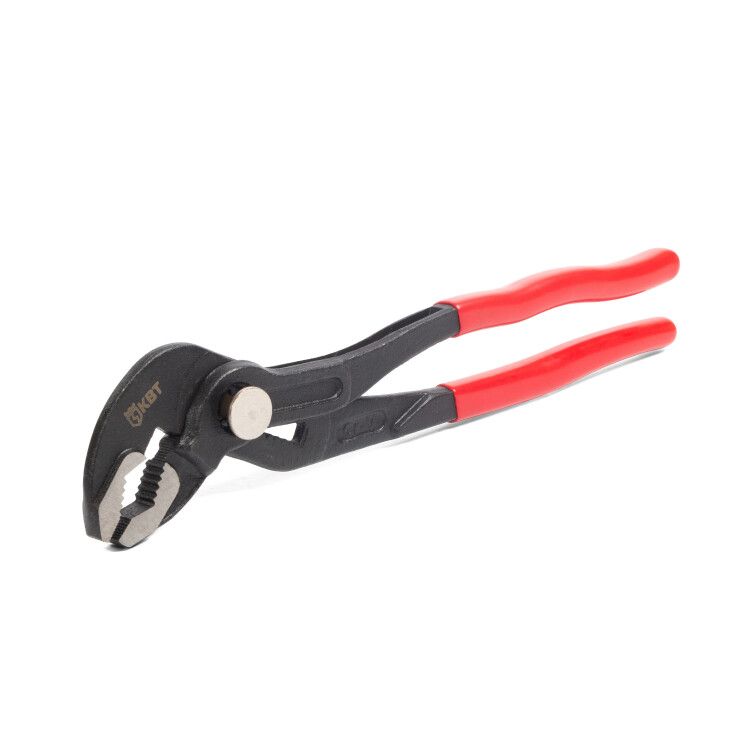 Клещи переставные 250 мм от бренда КВТ (артикул 85283) - надёжный инструмент для точного захвата и удержания деталей различной формы в условиях монтажа, сантехники и слесарных работ. Благодаря сквозному шарниру и пластизольным рукояткам с изоляцией они подходят как для обычных, так и для работ в зонах с риском поражения током.