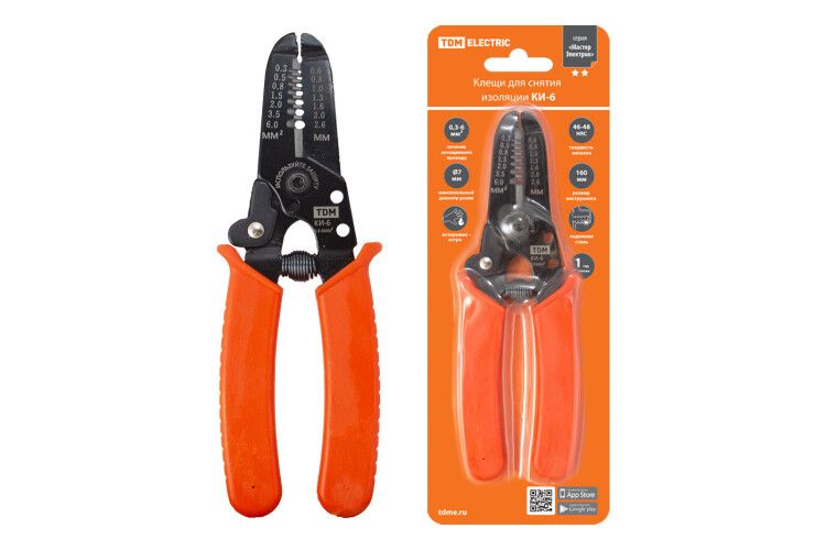 Клещи для снятия изоляции КИ-6, сечение зачищаемого провода 0,3-6 мм "МастерЭлектрик" (SQ1003-0110 TDM ELECTRIC) - это инструмент, предназначенный для снятия изоляции с проводников, разделки провода и снятия оболочки кабеля без повреждения остальных элементов конструкции кабеля.