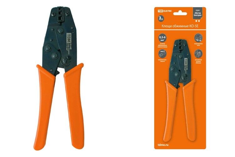 Клещи обжимные КО-5Е 0,25-6 мм от TDM ELECTRIC - это компактный и надёжный ручной инструмент для обжима кабельных наконечников и соединителей сечением от 0,25 до 6 мм2. Подходят для точного и быстрого монтажа в условиях ограниченного пространства.