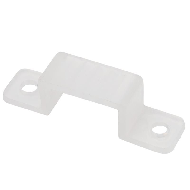 Клипса совместима исключительно с двухсторонним гибким неоном 8×16 мм. Шнур вставляется в щель до упора - он фиксируется механически без клея. Для монтажа требуется предварительная разметка и сверление отверстий под саморезы. Расстояние между клипсами рекомендуется 20–30 см для равномерного распределения нагрузки. Не используйте клипсу для жестких трубок или LED-лент шириной более 16 мм - возможна деформация материала.