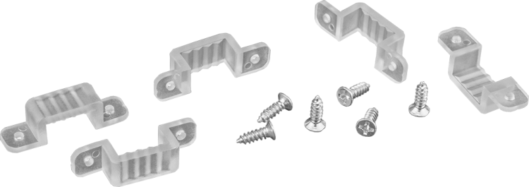 Скоба монтажная 71 777 NLSC-clip-3528-220 для крепления светодиодной ленты рассчитана на ленты с шириной контактов, соответствующими стандартным моделям 3528 и 2835. Установка происходит путём защёлкивания: лента вставляется в скобу до характерного щелчка. Крепление к поверхности - саморезами или клеем (на основе рекомендаций производителя ленты). Не требует инструментов для установки, кроме отвертки для фиксации скобы к основанию.