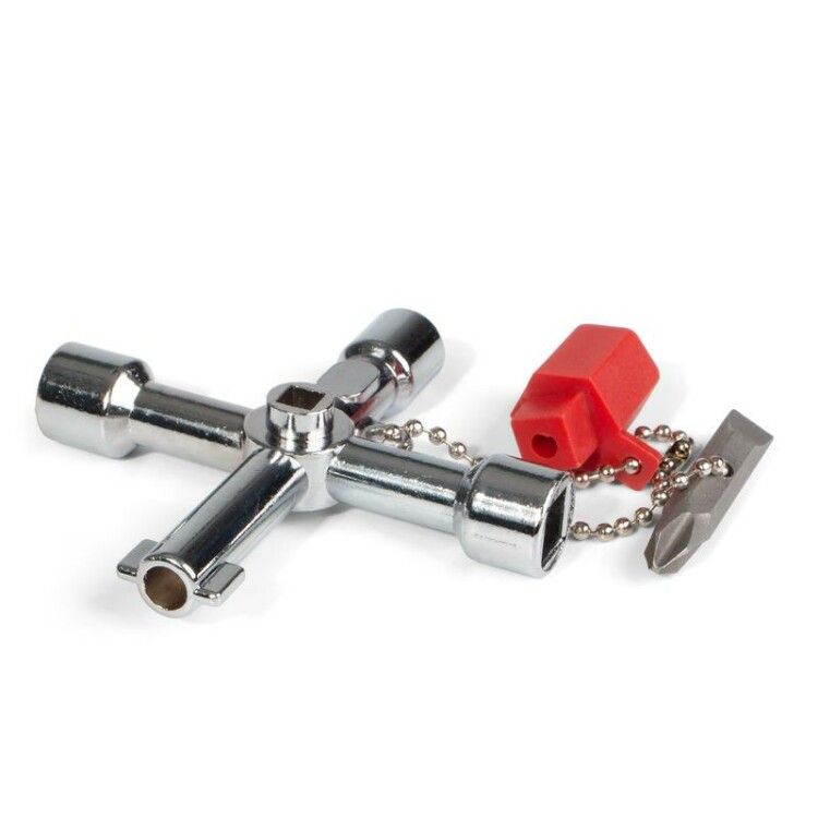 Ключ для электрошкафов КЭШ-5 серия МАСТЕР от КВТ - компактный универсальный инструмент для быстрого доступа к оборудованию в электрических и сантехнических шкафах, системах вентиляции и кондиционирования. Разработан для частого использования в условиях эксплуатации, где важна надёжность и многофункциональность.