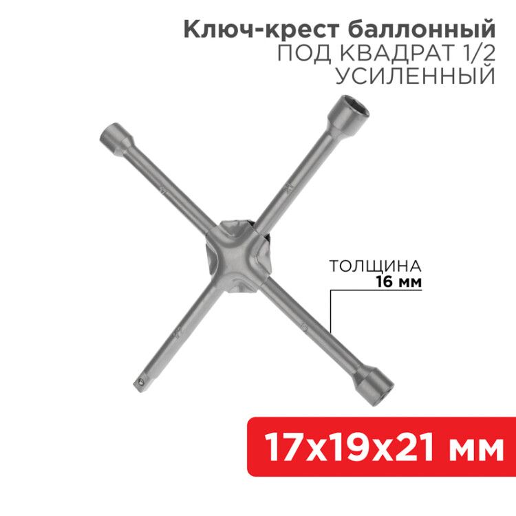 | Ключ-крест баллонный 17х19х21мм под квадрат 1/2 усиленный толщина 16мм Rexant 12-5881 | 22.02.2026 | 777 шт. | 585,24 ₽ | шт. | от 7 дней |