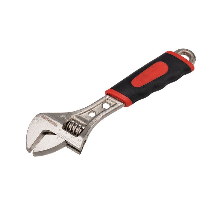 Ключ разводной 150 мм, двухкомпонентная рукоятка используется там, где нужны адаптивные решения - например, при работе с болтами и гайками разных размеров, когда набор фиксированных ключей неудобен. Он особенно эффективен при обслуживании трубных соединений, радиаторов, насосов, тормозных систем и других элементов, требующих частой перенастройки зева.