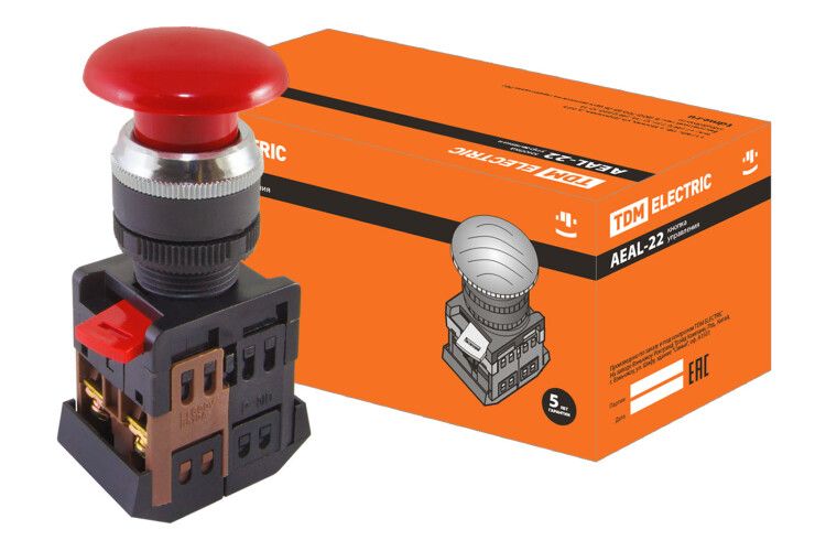 | Кнопка AEAL-22 "Грибок"с фиксацией красный d22мм 230В 1з+1р TDM | 26.12.2025 | 3 шт. | 351,4 ₽ | шт. | от 3 дней |