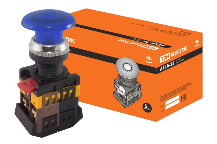| Кнопка AELA-22 "Грибок" синий d22мм неон/230В 1з+1р TDM | 25.02.2026 | 3 шт. | 417,31 ₽ | шт. | от 3 дней |
