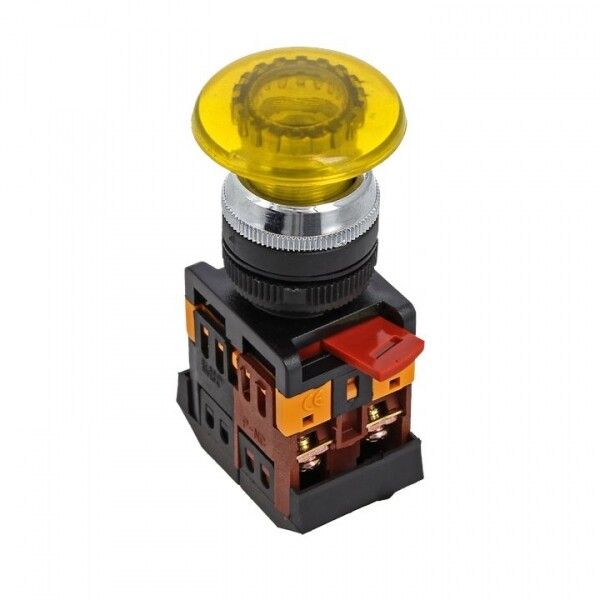 Кнопка AELA-22 "Грибок" желтая с подсветкой NO+NC 24В EKF PROxima | pbn-aela-1o-24