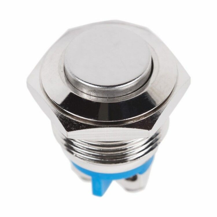 Кнопка анивандальная диаметр 16 мм без фиксации (2 контакта винт) (ON)-OFF выпуклая используется для временного включения электрической цепи при нажатии и автоматическом отключении после освобождения. Применяется там, где возможны удары, вибрации или попытки вандализма: