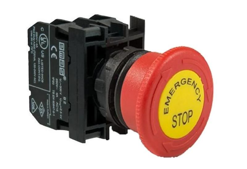 Кнопка аварийная EMAS b102ee - надёжное устройство для экстренного отключения оборудования с двумя контактами (НО и НЗ) и механической фиксацией, возвращаемой поворотом. Подходит для установки в электрощитах, на станках, конвейерах и других промышленных системах, где важна быстрая реакция и долгий срок службы.