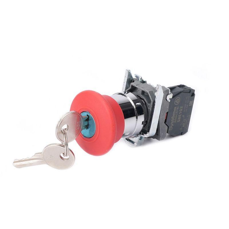 Кнопка аварийного останова SB4 в сборе 22мм 40мм ключ металл 1НЗ | SB4BS142 SE APC