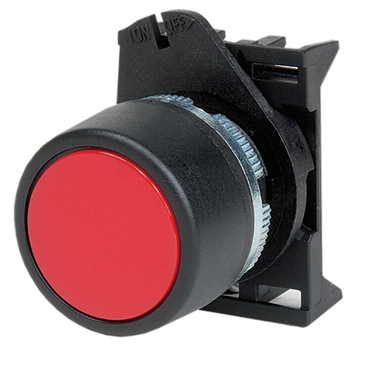 Кнопка плоская без фиксации, красная предназначена для временного замыкания электрической цепи при нажатии. После освобождения кнопка автоматически возвращается в исходное положение. Применяется в системах управления: запуск/остановка механизмов, аварийные сигналы, тестирование оборудования. Часто используется на пультах станков, конвейеров, насосных станций и других промышленных устройствах.