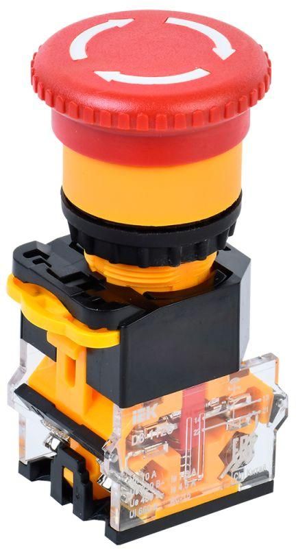 - Тип фиксации: поворотная с фиксацией - после нажатия кнопка остаётся в нажатом состоянии, для освобождения требуется поворот против часовой стрелки