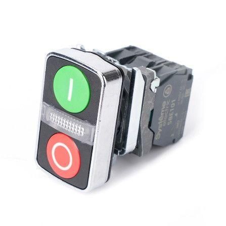 Кнопка двойная SB4 в сборе модуль 22мм зел."I"+сигн. лампа+красн."О" металл 230В AC 1НО+1НЗ SE SB4BW7A3741M5 APC