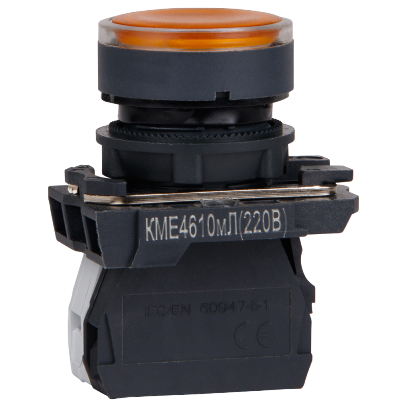 Кнопка КМЕ4111мЛ-24В-желтый-1но+1нз-цилиндр-индикатор-IP40 | 354394 КЭАЗ