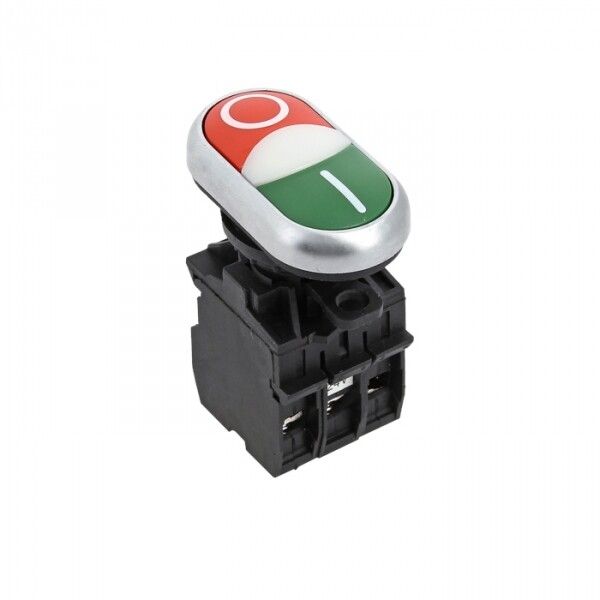 Кнопка EKF LA32HND красно-зеленая 'Пуск-Стоп' с подсветкой 24В DC NO+NC - компактное устройство управления с двумя контактными группами и цветной индикацией, предназначенное для ручного запуска и остановки оборудования в системах с постоянным током 24 В.