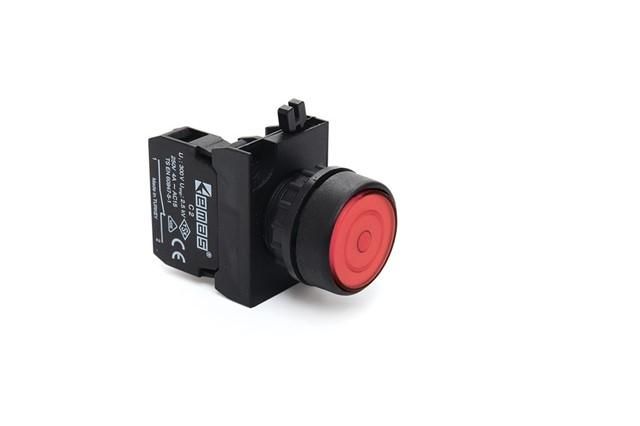 Кнопка нажимная круглая красная с фиксацией от бренда EMAS с артикулом cp100fk предназначена для ручного управления оборудованием, где требуется надёжное удержание положения после нажатия - например, для запуска или остановки цикла на станках, конвейерах или системах безопасности.
