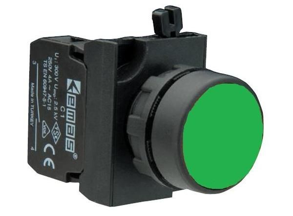 Кнопка нажимная круглая зел. (1НО) EMAS CP100DY