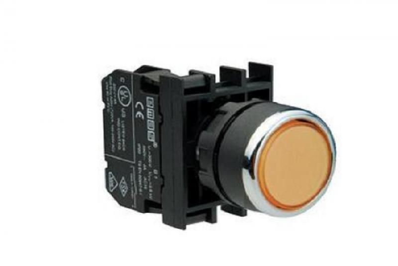 Кнопка нажимная круглая желтая (2 нормально открытых контакта) в сборе от бренда EMAS с артикулом b101ds предназначена для ручного управления электрическими цепями в промышленной автоматике. Устройство надёжно фиксируется в панелях и обеспечивает замыкание цепи при нажатии, возвращаясь в исходное положение после освобождения.