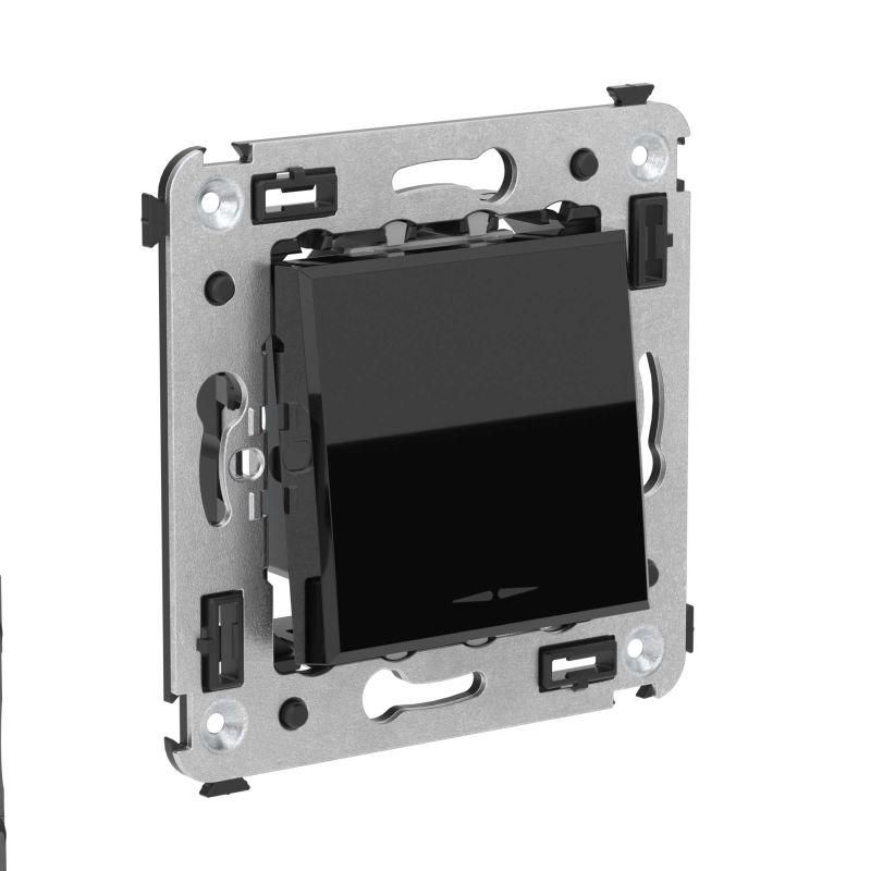 Кнопка одноклавишная в стену, черный цвет, квадратная от DKC (ДКС), артикул 4402153 - это компактное устройство для управления освещением или другим оборудованием через однократное нажатие. Устройство предназначено для скрытой установки в подрозеточные коробки и совмещает надежную механику с элементами подсветки для удобства в темноте.