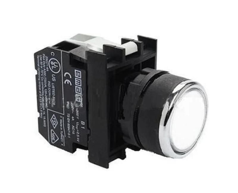 Кнопка с подсветкой-светодиод (1HO) 12-30В перем. и пост. тока бел. EMAS B150DB
