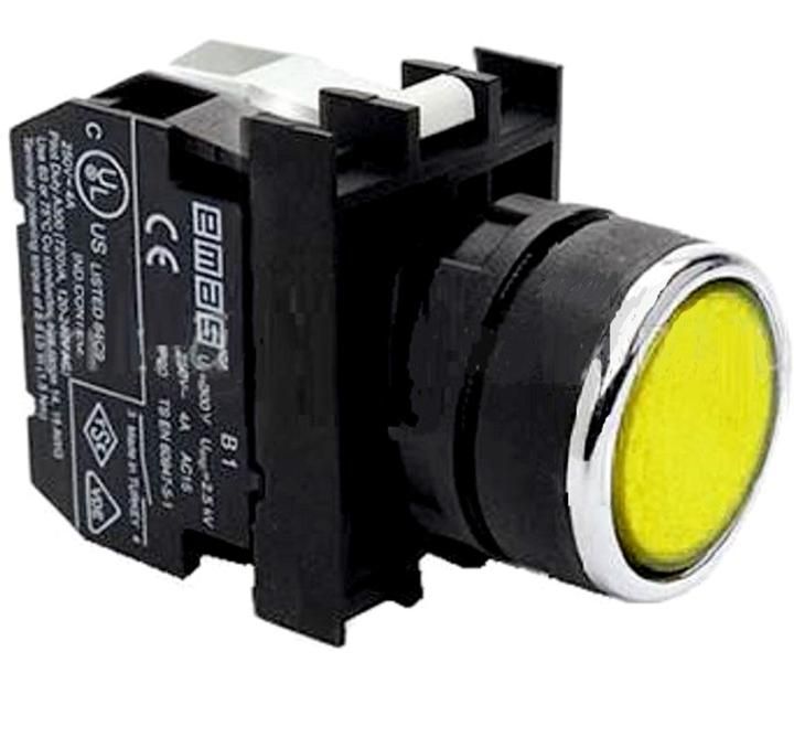 Кнопка с подсветкой-светодиод (1НО) 12-30В перем. и пост. тока желт. EMAS B180DS