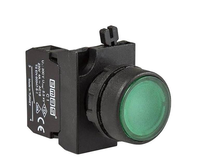 Кнопка с подсветкой-светодиод CP190DY (1НО) зел. EMAS