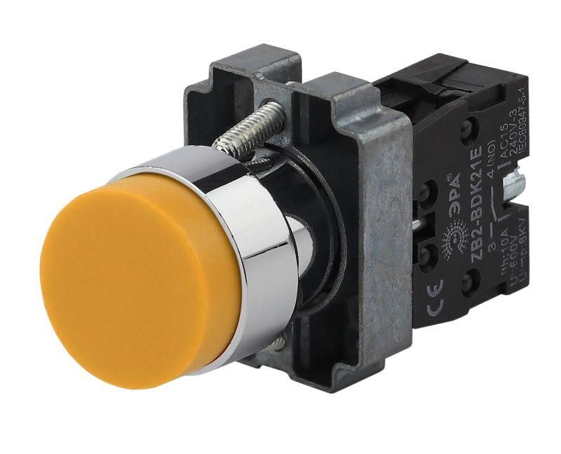 Кнопка управления LAY5-BL51 без подсветки желтая 1з (20/200/6000) ЭРА, BBT71-BL-K05E - это механическая кнопка с самовозвратом для ручного управления электрическими цепями в пультах и распределительных щитах. Простая, надежная и совместимая с большинством стандартных контактных модулей, она подходит для задач, где не требуется подсветка или фиксация положения.