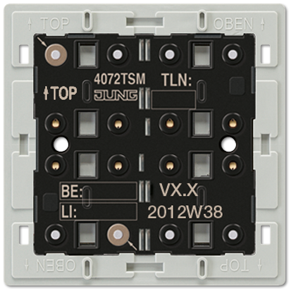 KNX кнопочный модуль с интегрированным шинным сопряжением, "стандарт", 1-4 группы| 4072TSM |Jung не поставляется, возможно товар снят с производства, по запросу, наши инженеры помогут подобрать аналоги, замены.