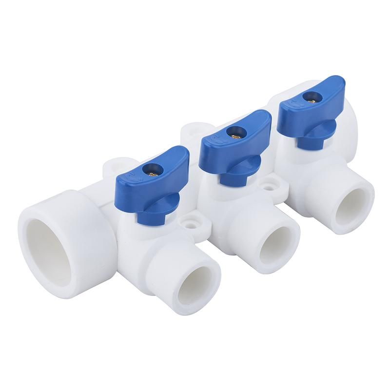 Коллектор полипропиленовый 32х20/4 с синим шаровым краном белого цвета совместим с любыми трубами из ППР того же диаметра. Для монтажа используются термосварочные аппараты - соединения выполняются методом сварки врастание. Убедитесь, что трубы подготовлены: срез ровный, без заусенцев, поверхность обезжирена. Диаметр посадочных мест соответствует стандартным размерам ППР-труб: 32 мм и 20 мм. Нельзя использовать коллектор с металлопластиковыми или полиэтиленовыми трубами - они требуют других фитингов.
