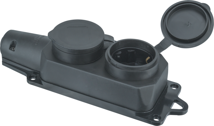 Колодка не имеет встроенной вилки или кабеля - она служит лишь точкой подключения. Для установки необходимо самостоятельно подвести фазу, ноль и землю через кабель сечением 0,5–2,5 мм2. Клеммы рассчитаны на плотное обжатие жил, что исключает нагрев. Монтаж выполняется с помощью стандартных винтовых зажимов внутри корпуса. Корпус разборный - можно заменить повреждённые розетки или проверить контакты без замены всей колодки. Посадочные места для кабеля имеют герметизирующие вводы - обеспечивают сохранение степени защиты IP44 после монтажа.