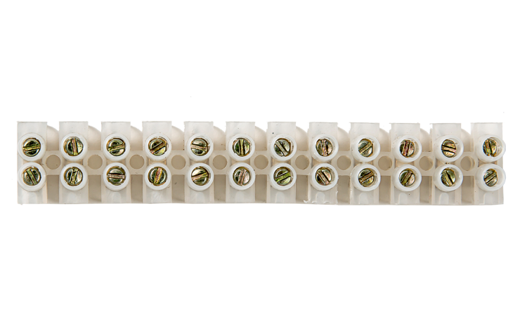 Клеммная колодка IN HOME КЗВ 20-12 20А 4-12мм 12 пар монтируется на DIN-рейку шириной 35 мм. Для подключения достаточно зачистить изоляцию провода на 8–10 мм, вставить его в гнездо и затянуть винт отверткой. Нет необходимости использовать специальные инструменты. Каждая пара контактов изолирована друг от друга, что исключает случайное замыкание. Примечание: не используйте инструменты с острыми краями - можно повредить внутренние контакты.