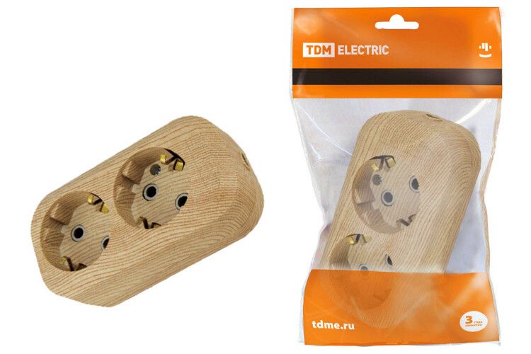 Колодка розеточная 2 гнезда 2П+З 16А 250В "Эко" (сосна) | SQ1806-0046 TDM