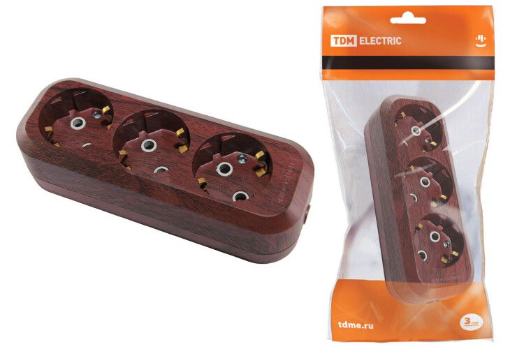 Колодка розеточная 3 гнезда 2П+3 16 А 250 В (бук) от TDM ELECTRIC - надёжное решение для подключения бытовой и офисной техники в жилых и коммерческих помещениях. Артикул sq1806-0062 обеспечивает безопасную работу с нагрузкой до 16 ампер, соответствует требованиям к розеткам классического типа.