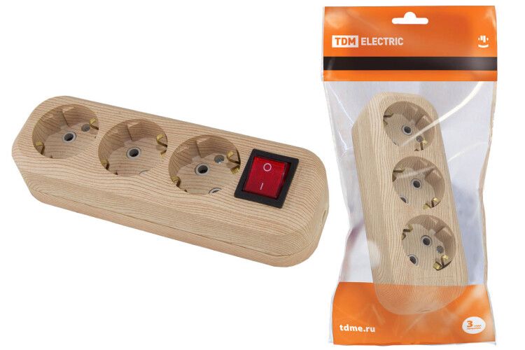 Колодка розеточная 3 гнезда 2П+3 с выключателем16А 250В "Эко" (сосна) | SQ1806-0049 TDM