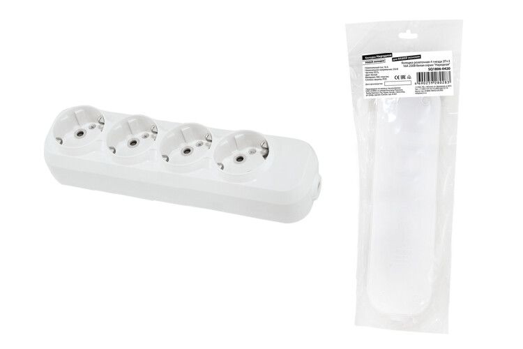 Колодка розеточная 4 гнезда 2П+3 16А 250В белая серии "Народная" | SQ1806-0420 TDM