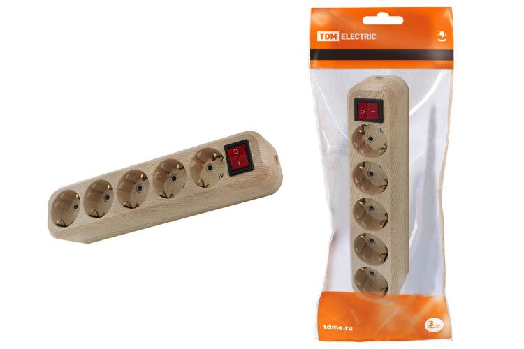 | """Колодка розеточная 5 гнезд 2П+3 с выключателем16А 250В """"Эко"""" (сосна) TDM""" - SQ1806-0055 | 28.02.2026 | 30 шт. | 766,58 ₽ | шт. | от 1 дня |