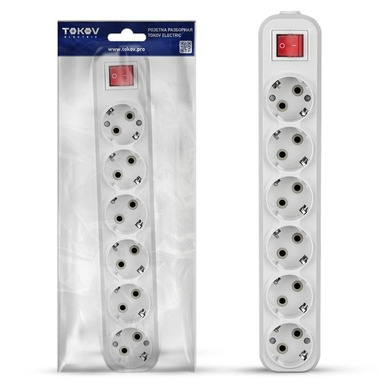 Колодка удлинителя 6-м 16А с заземл. выкл. АБС-пластик бел. TOKOV ELECTRIC TKE-C01-KU6-ZV