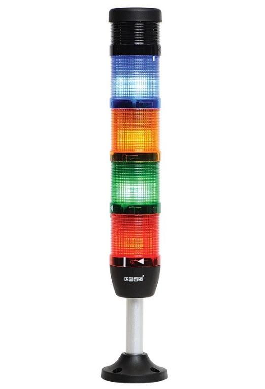 Сигнальная колонна 50 мм, 4 цвета (красный, зелёный, жёлтый, синий), с зуммером, светодиод LED, алюминиевый патрубок 100 мм основанием, 24В AC/DC, IP40 - IK54L024ZM03 EMAS