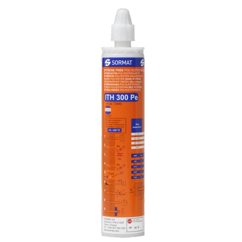 Комплект для инжекции (полиэстер) ITH 300 PE - 9640072940 Sormat 40728 - это надежное решение для крепления в различных материалах, таких как бетон, кирпич и камень. Он относится к ассортименту химических креплений «Sormat» и является высококачественным продуктом без запаха стирола.