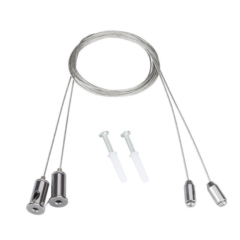 - Подвесить панель на тросы, зацепив их за винты.