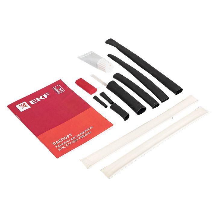 Комплект для соединения EKF PROxima stv предназначен для надёжного и герметичного соединения саморегулирующихся нагревательных кабелей ESR, ESS и ESU, а также для их ремонта и оконцевания. Комплект использует термоусаживающуюся муфту с коэффициентом усадки 4:1, обеспечивая плотную изоляцию без дополнительных креплений.