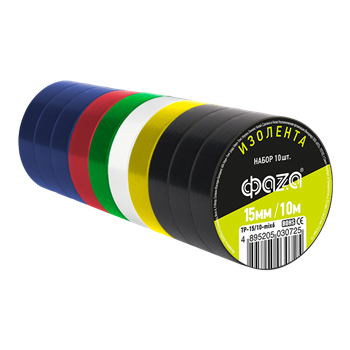 Комплект изол. ФАZА 15мм * 10м, 10 роликов 6 цветов арт.5030725 ФАЗА