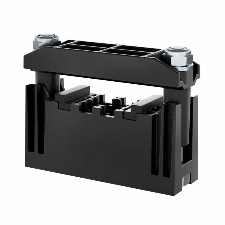 Комплект изолятора ступенчатой шинной системы DKC совместим со шнами серии RAM bus, имеющими прямоугольное сечение от 20×5 до 50×10 мм. Установка выполняется путём фиксации шины между регулируемыми проставками - они позволяют точно выставить положение шины по высоте и сохранить заданный зазор 20 мм между соседними уровнями. Крепление к поверхности осуществляется через отверстия в основании изолятора. Для надёжности рекомендуется использовать болты M8 или M10 с гроверами и шайбами.