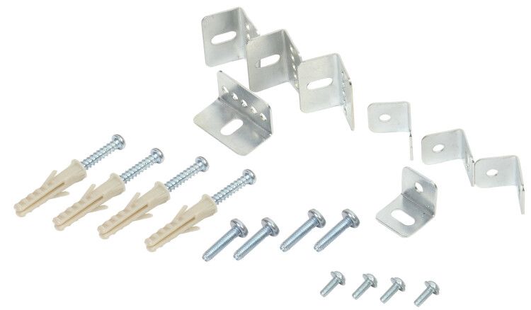 кронштейн 16х16х28 мм - 4 шт.| винт М3х8 - 4 шт.| кронштейн 16х16х16 мм - 4 шт.| винт самонарезающий 4х25 - 8 шт.| дюбель пластмассовый - 4 шт.