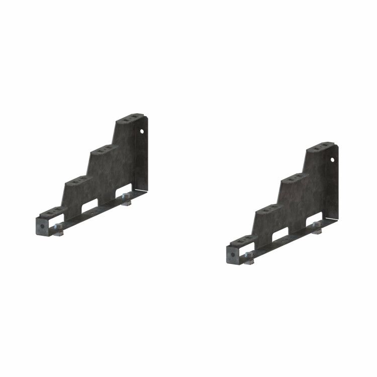 Комплект опорных кронштейнов ступенчатой шинной системы, левый+правый, 4P DKC - это сборочный элемент для надёжного крепления четырёхполюсной шинной системы RAM bus на расстоянии 75 мм друг от друга. Подходит для установки в щитах управления, силовых распределительных устройствах и других системах, где требуется жесткая фиксация токоведущих шин.