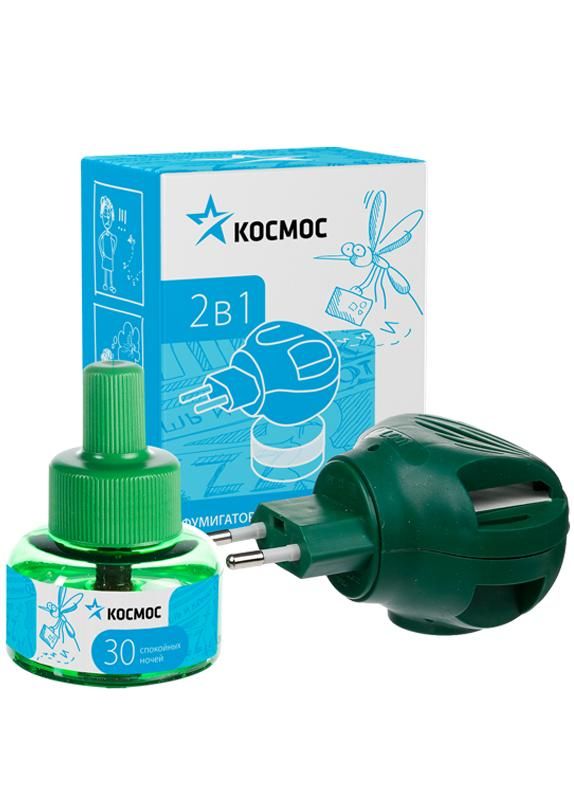 Комплект от комаров: электрофумигатор + жидкость 30 ночей без запаха (можно использовать либо с жидкостью пластинами) Космос KOC_GH326