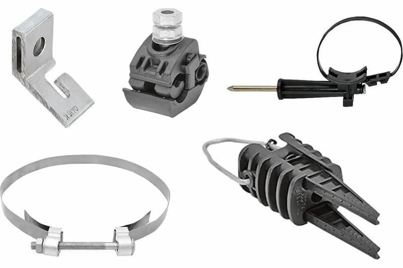 - Количество элементов: кронштейны, хомут, зажимы для ввода, фасадное крепление, ответвительные зажимы